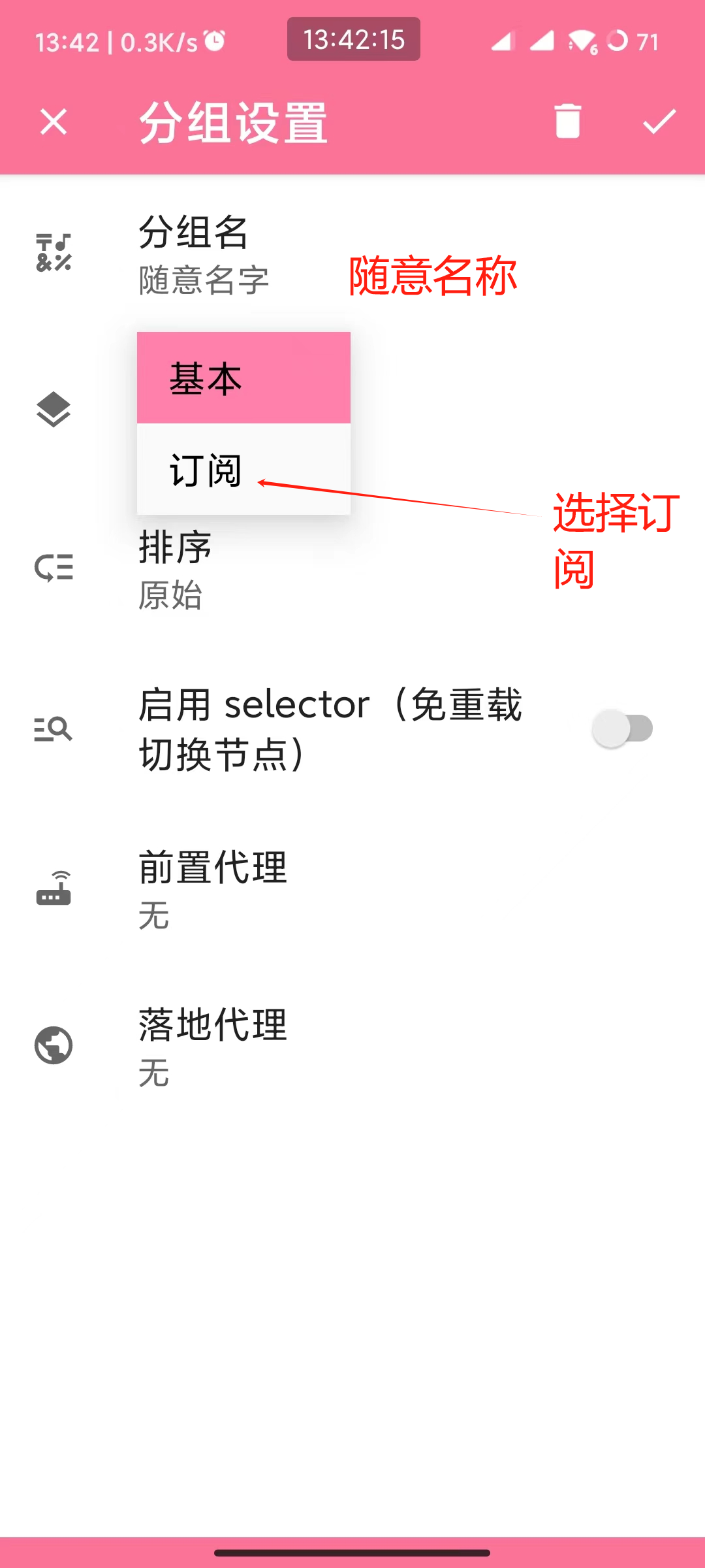 5.名称随意,分组类型选择订阅